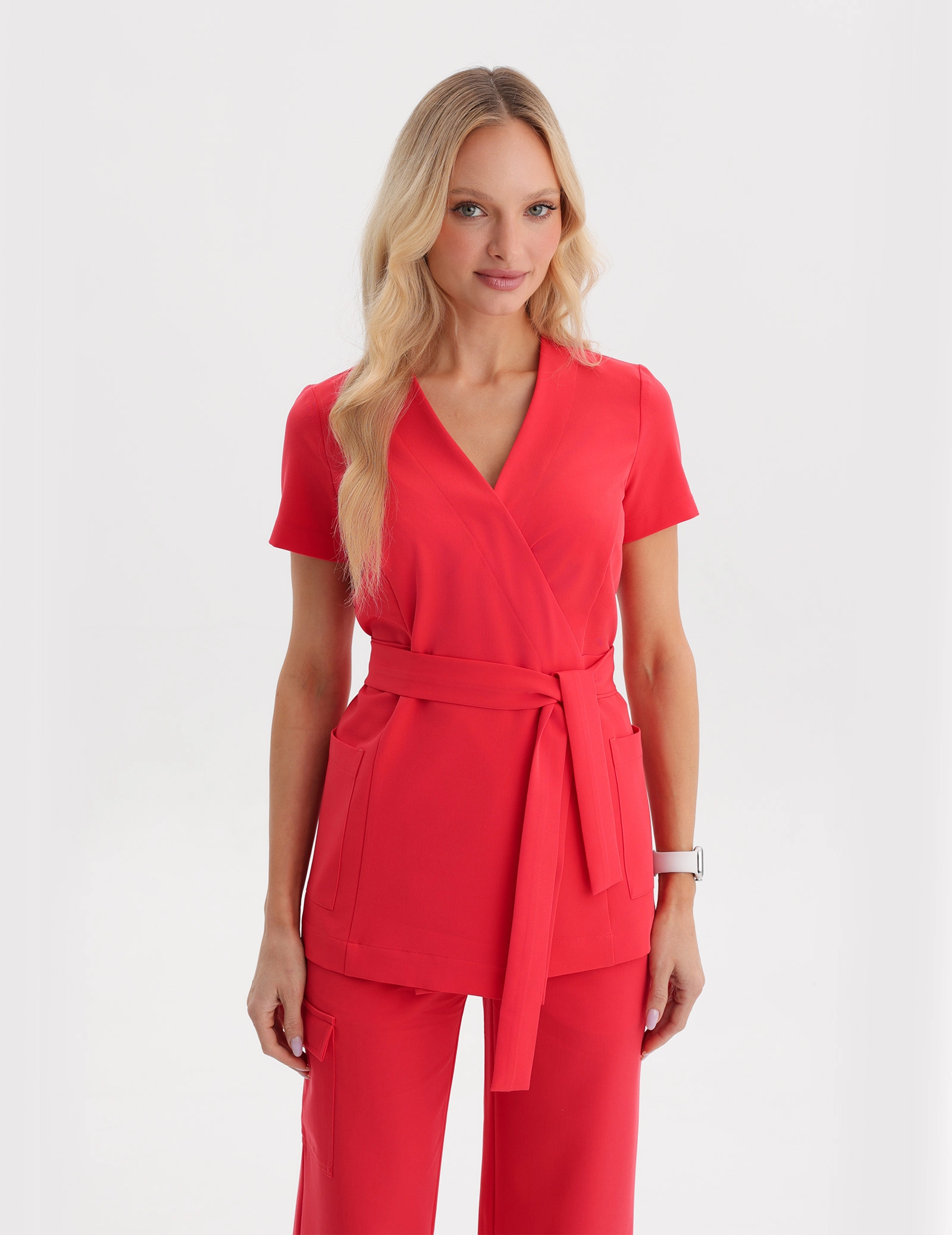 Lékařská tunika AURI s krátkým rukávem spojuje profesionální styl s moderní elegancí. Byla vytvořena pro náročné specialistky v lékařském a kosmetickém oboru, které chtějí vypadat stylově a cítit se pohodlně po celý pracovní den.